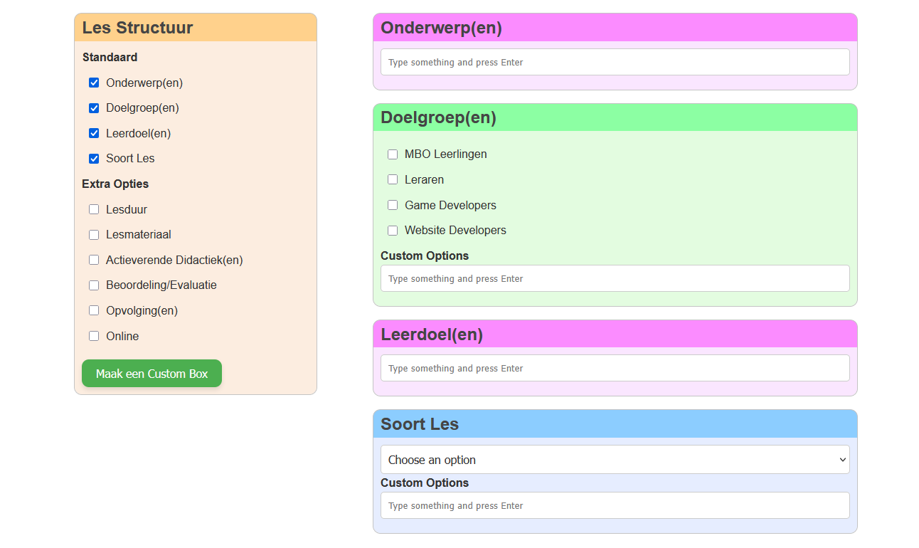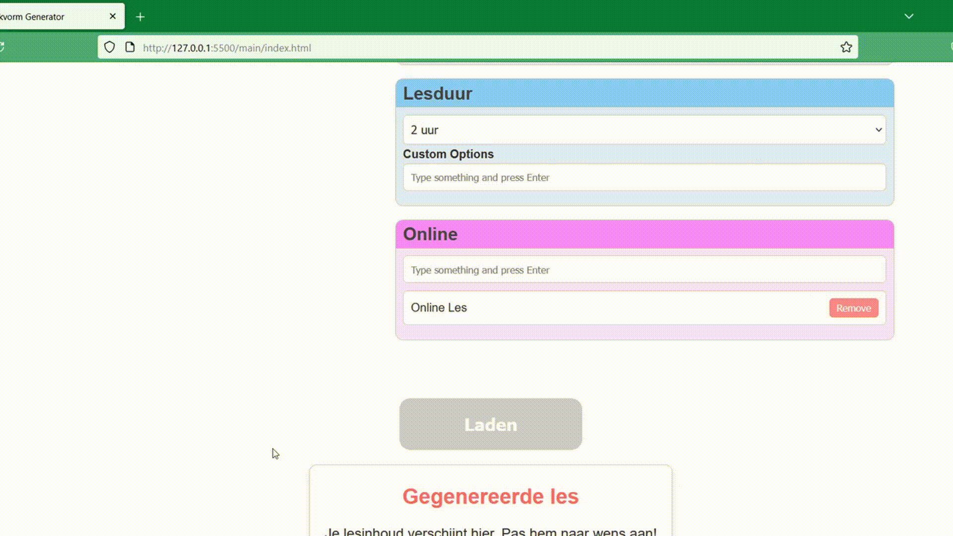 This project was built to help teachers create lesson plans more efficiently. Teachers want to make use of AI in developing their lesson plans in a structured way. Direct use of ChatGPT lacks this structure and can be complicated without the experience of using an AI prompt. The generator lets teachers build lesson plans by entering UI inputs, which are then sent to an AI in the background.